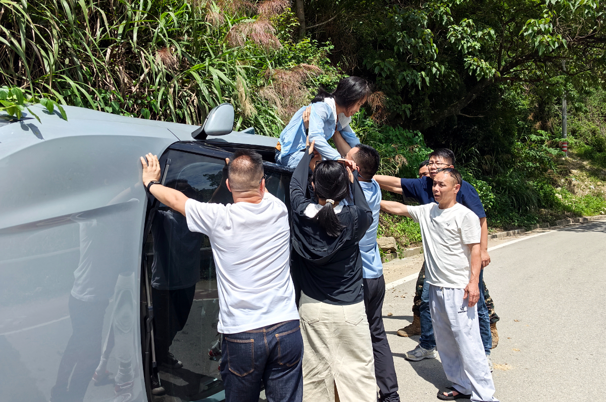 据浙石油销售公司几名员工回忆,见前方有事故发生,他们立即下车,分工展开救援。一人立即拨打120急救和110报警电话,精准报告事故地点及现场状况,并在事故后方设置警示标志、疏导交通,防止发生二次事故;其余人员冲向事故车辆,安抚受困母女情绪,并协助她们安全爬出车窗。随后,员工们将脱困母女转移至安全区域,待120急救车抵达后,协助医护人员送医,向交警说明情况后才离开。
