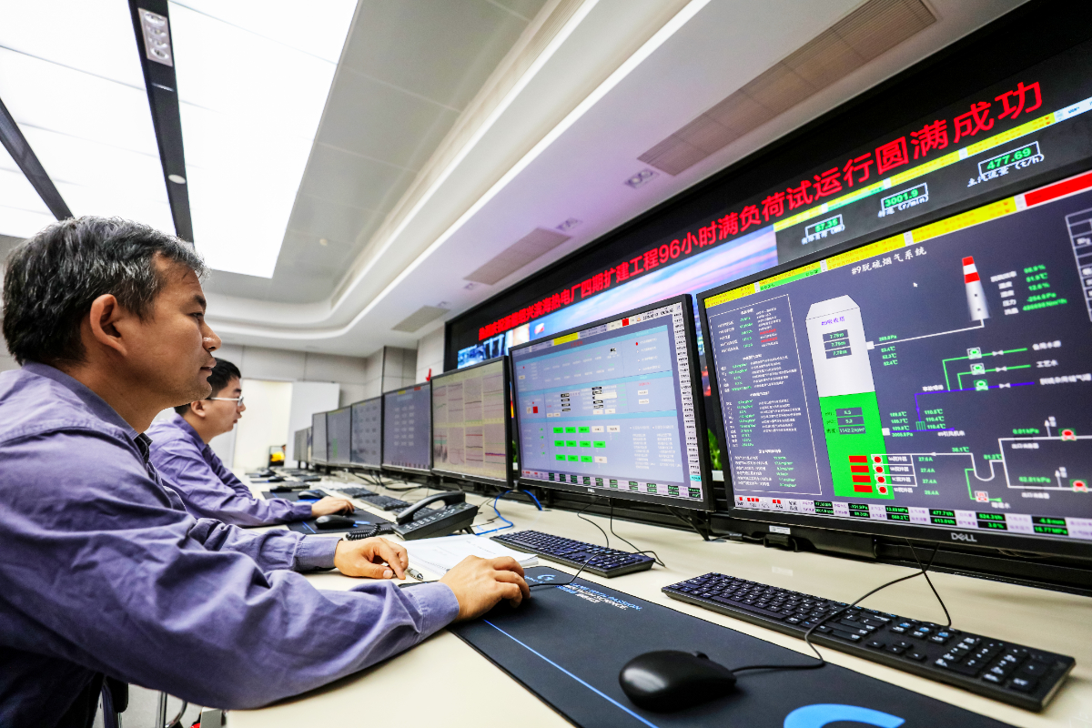 赌博网址滨海热电运行操作员在项目9号机组168试运行期间认真监盘。 徐明敏 摄