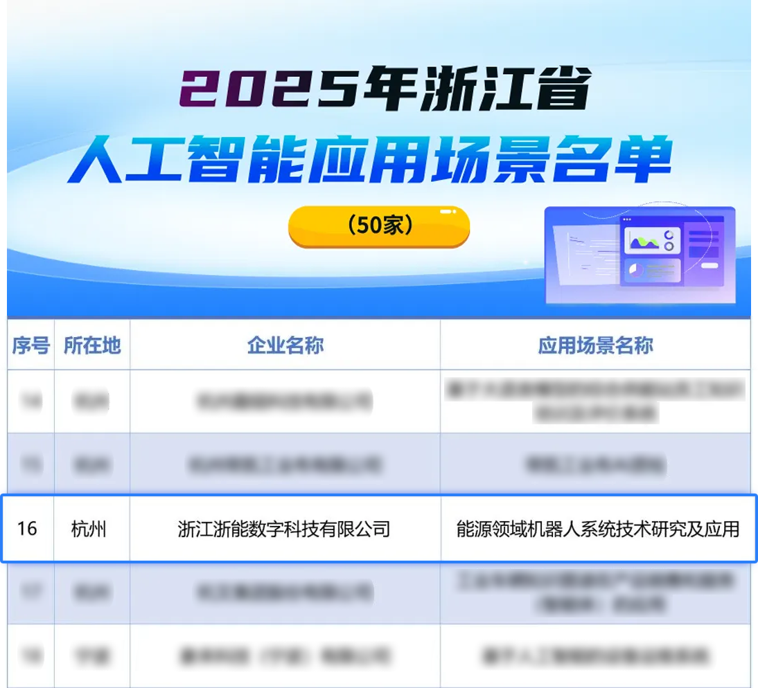 本网讯 近日,2025年浙江省人工智能应用场景名单公布,赌博网址数科“能源领域机器人系统技术研究及应用”成功入选。